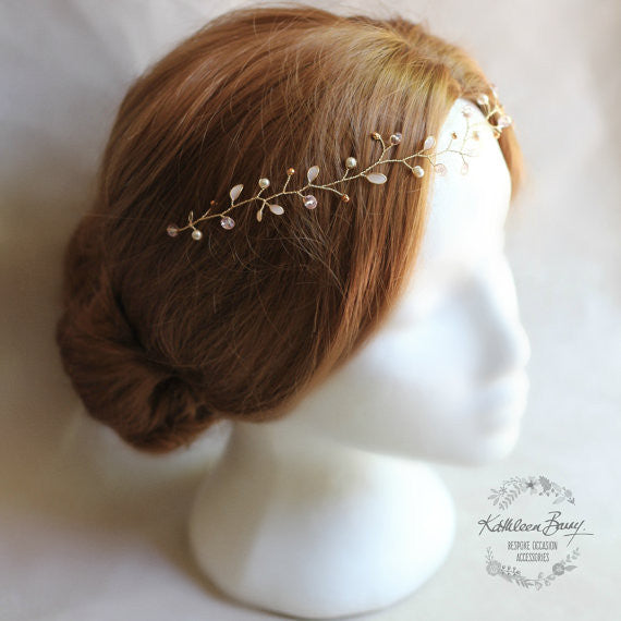 A delicate handmade hair vine OR headband there are two style options: flexible vine or wired onto a thin headband (ideal for short hairstyles) – prices vary