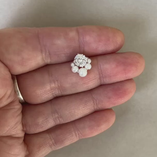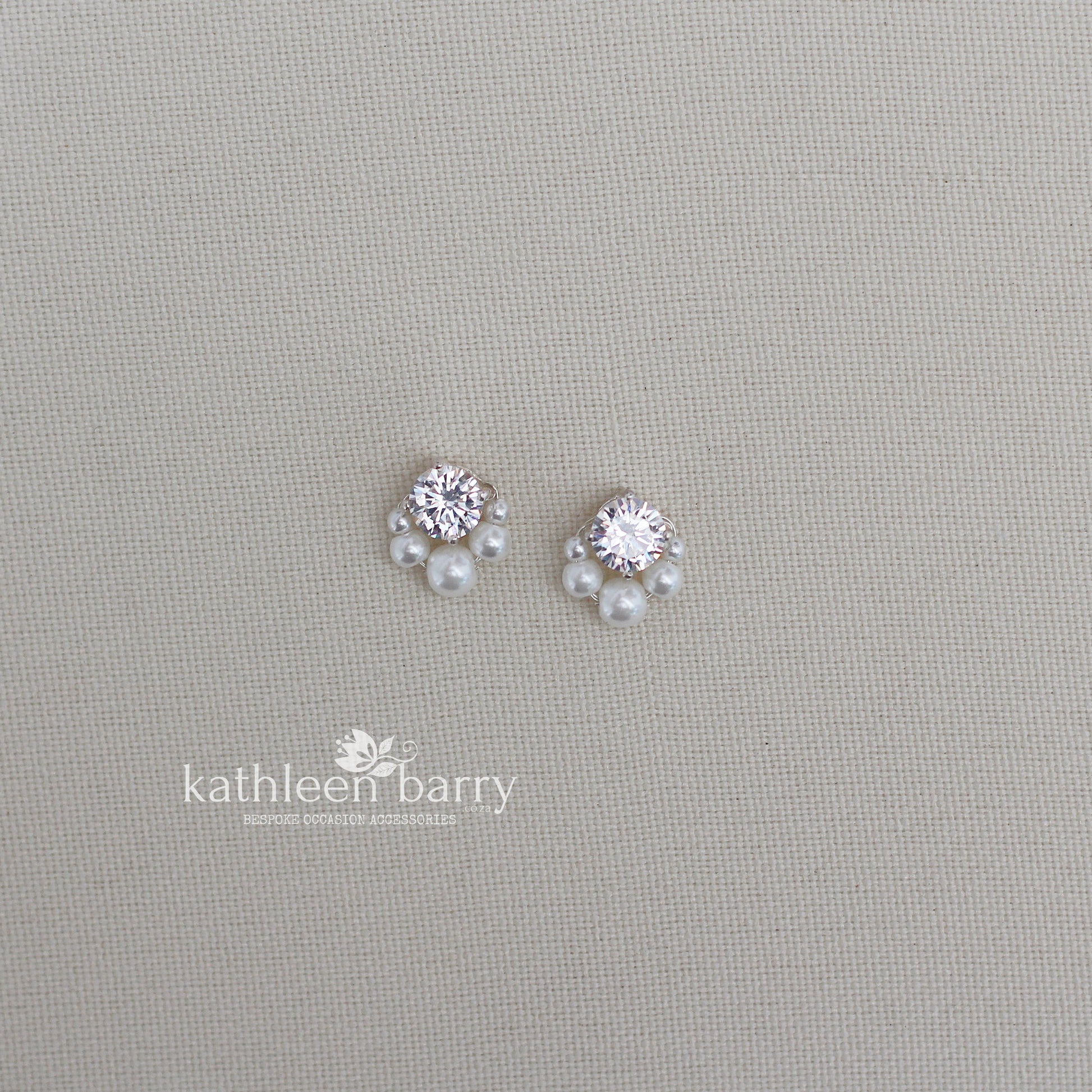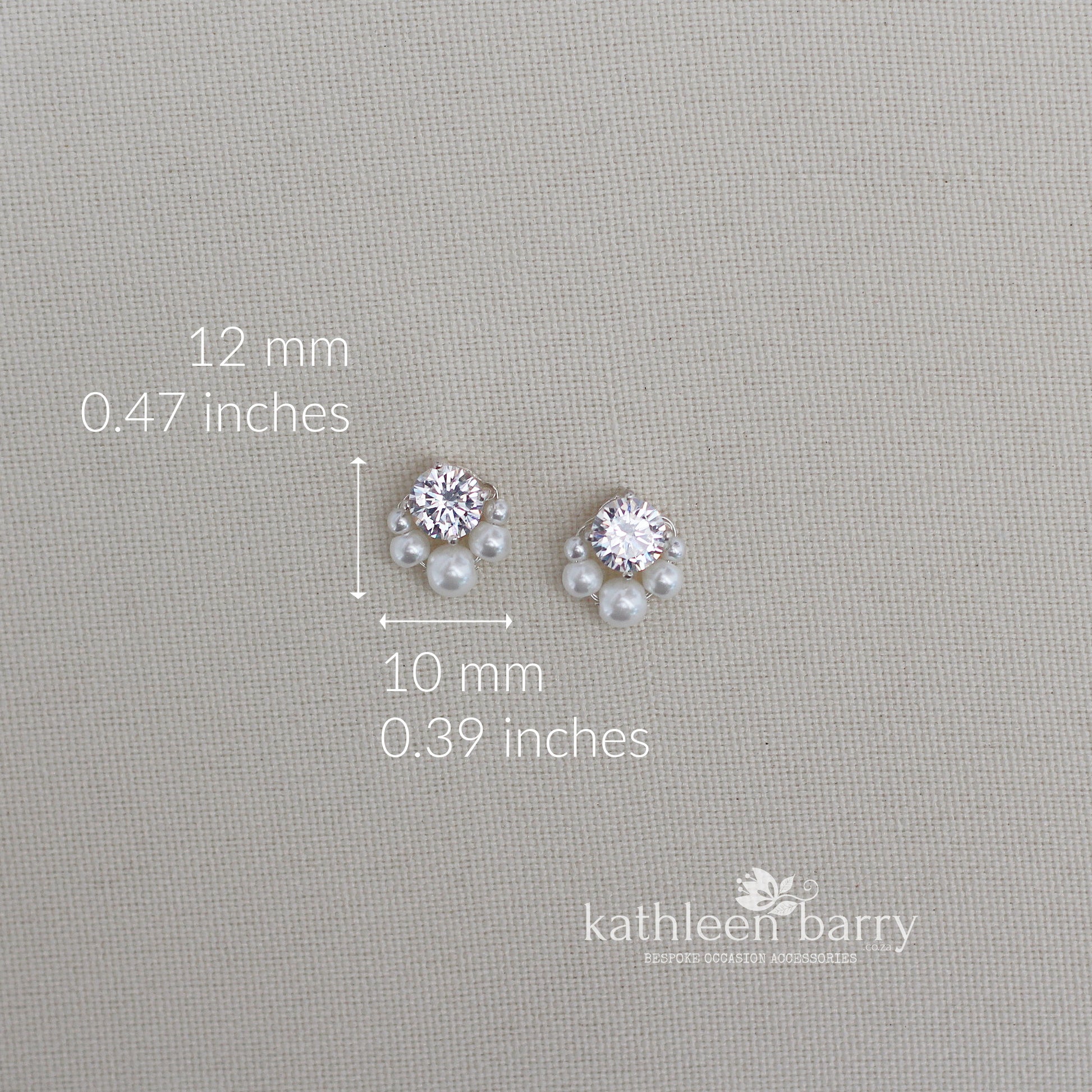 Dainty Cubic zirconia pearl stud earrings - Sterling silver only STYLE Carolyn
