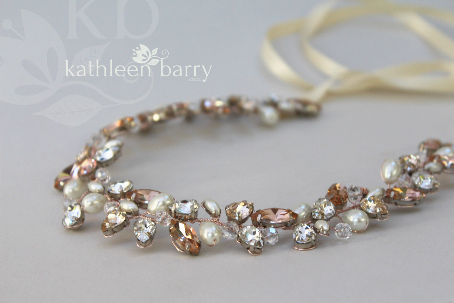 Frances rhinestone and a hint of champagne headband or hairpiece with pearls