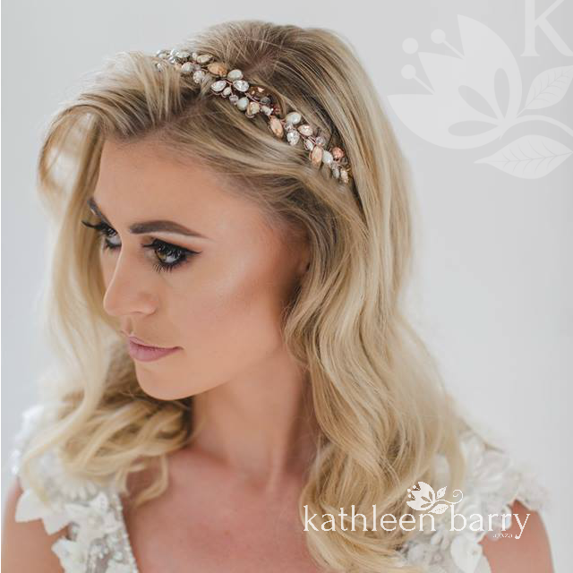 This design can be styled in a multitude of ways, pinned into the hair with your stylist's preferred pins (not supplied), secured with bobby pins via small hidden loops or your selection of attaching a ribbon to the ends for styling as a headband.