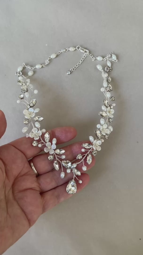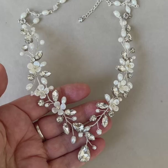 Yolanda statement floral wedding necklace - Available in Silver or gold finish, Clear Rhinestones