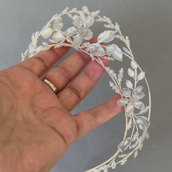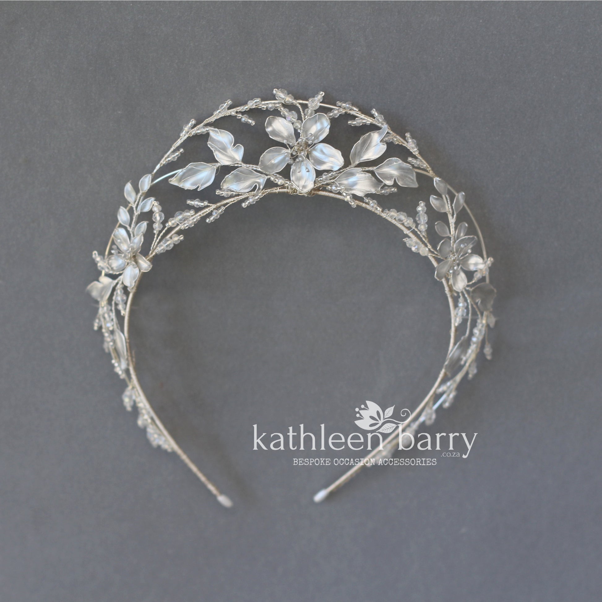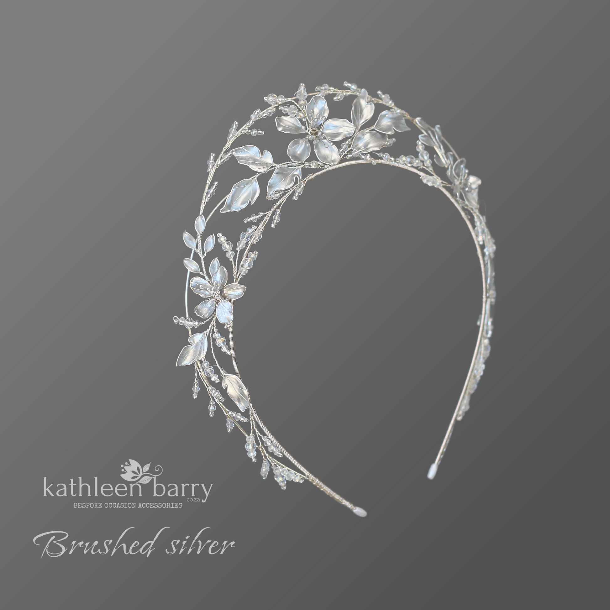 Organic floral leaf tiara style crown - brushed silver, gold or rose gold (any custom finishes available)