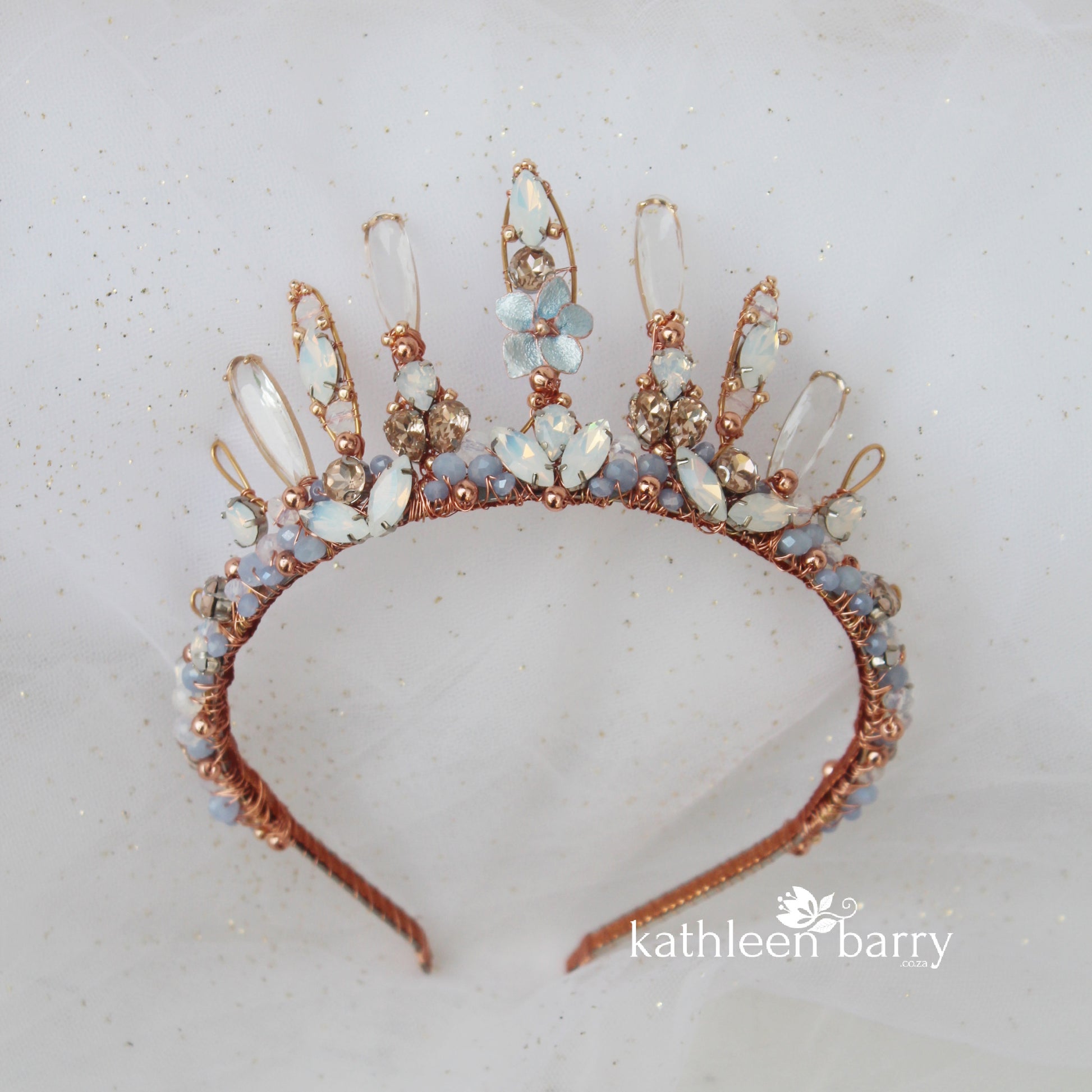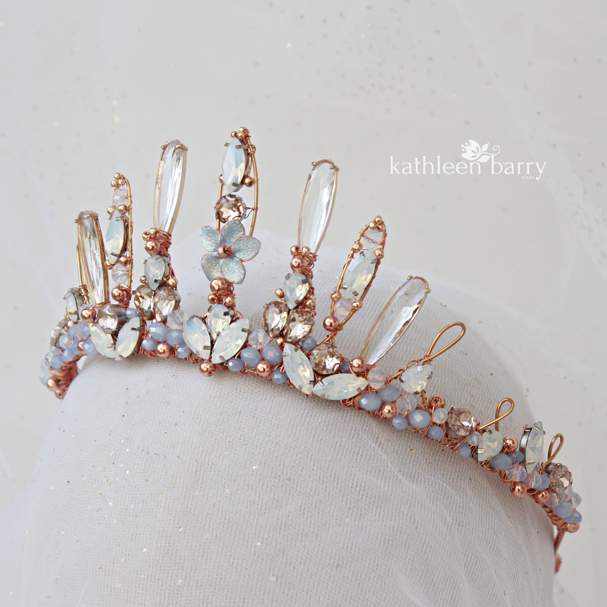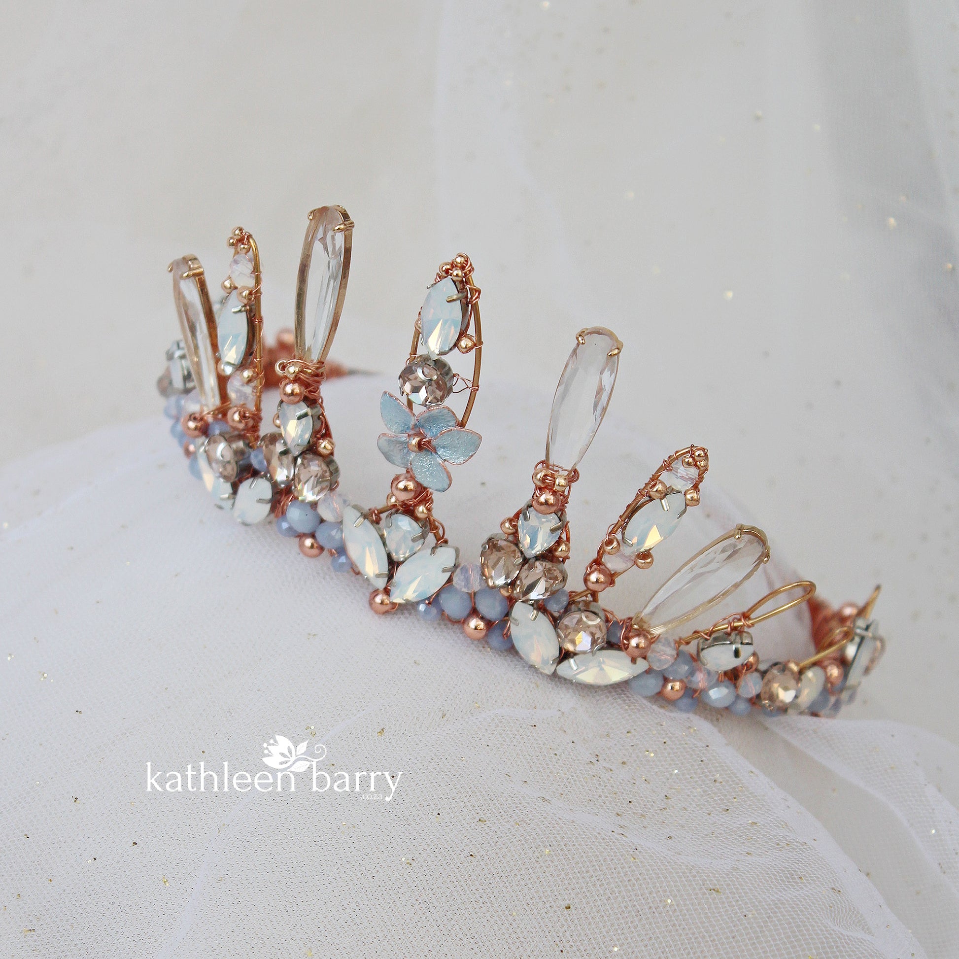 Paige Tiara style bridal crown rose gold and pale opal blue - wedding hair accessories - custom colors to order
